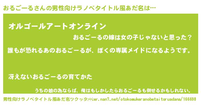 | 胡散臭い通販商品みたいなあだ名 | 『来世でも幸せになれる健康食品…その名も「おるごーる」』 |
