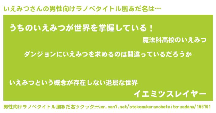 | 胡散臭い通販商品みたいなあだ名 | 『信頼と実績のネックレス…その名も「いえみつ」』 |