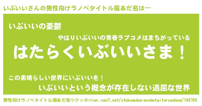 | 胡散臭い通販商品みたいなあだ名 | 『必ず成功する霊験あらたかなお札…その名も「いぶいい」』 |