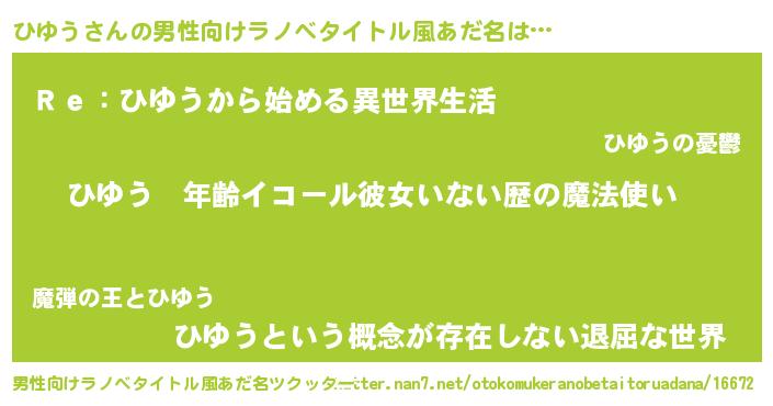 | 意味不明あだ名 | 『ヨモギ科ひゆう属』『自称ひゆう』 |