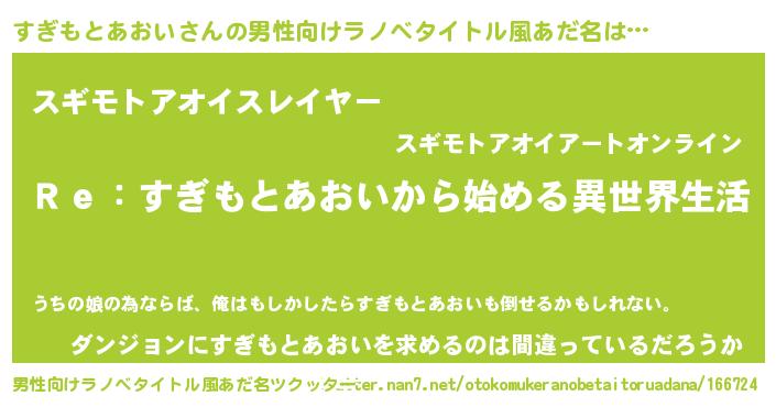 | 女子向けラノベタイトル風あだ名 | 『すぎもとあおいストレイドッグス』 |