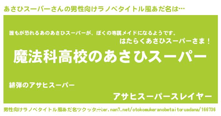 | 女子向けラノベタイトル風あだ名 | 『あさひスーパーアンティーク』 |