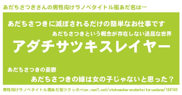 | ヘコむあだ名 | 『あだっ子』『あだちさつき(笑)』 |