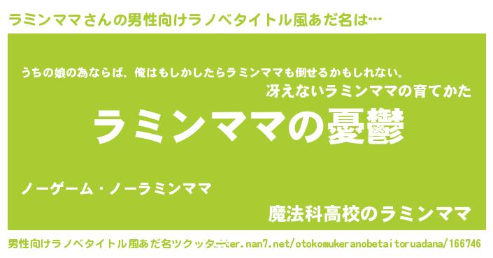 | 女子向けラノベタイトル風あだ名 | 『ラミンママ姫と円卓の騎士』 |