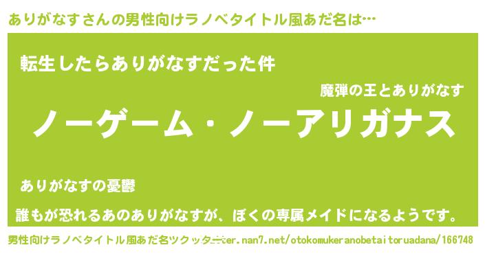 | 女子向けラノベタイトル風あだ名 | 『ありがなす恋絵巻』 |