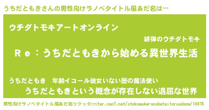 | 女子向けラノベタイトル風あだ名 | 『うちだともきストレイドッグス』 |