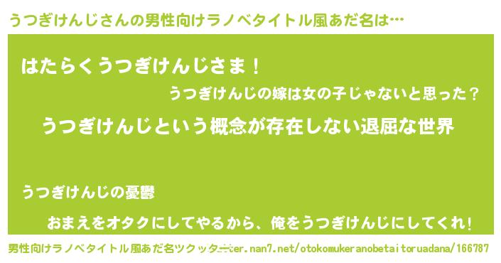 | 女子向けラノベタイトル風あだ名 | 『異世界で失敗しない100のうつぎけんじ』 |