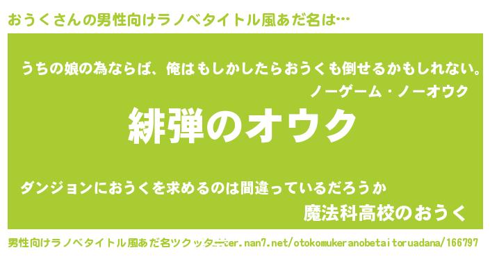 | ヒーロー風カッコイイあだ名 | 『ウルトラおうくマン』『究極戦士オウク』 |