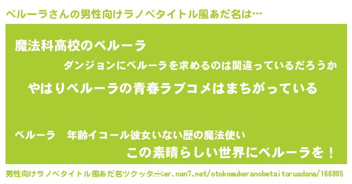 | 意味不明あだ名 | 『ベルーラフォーエバー』『自称ベルーラ』 |