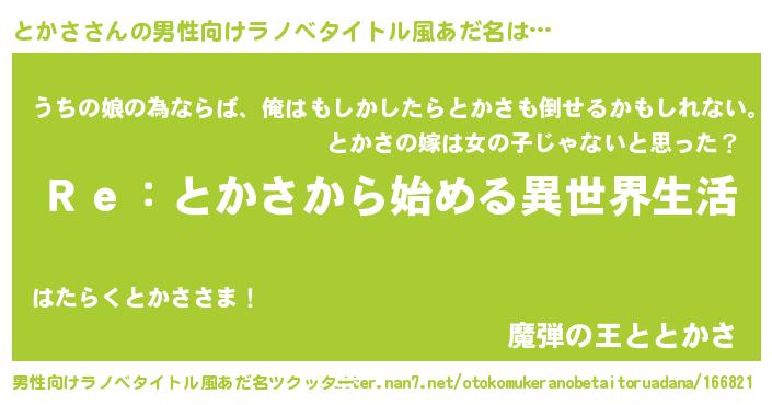 | ヒーロー風カッコイイあだ名 | 『最強戦士トカサ』『ウルトラとかさマン』 |