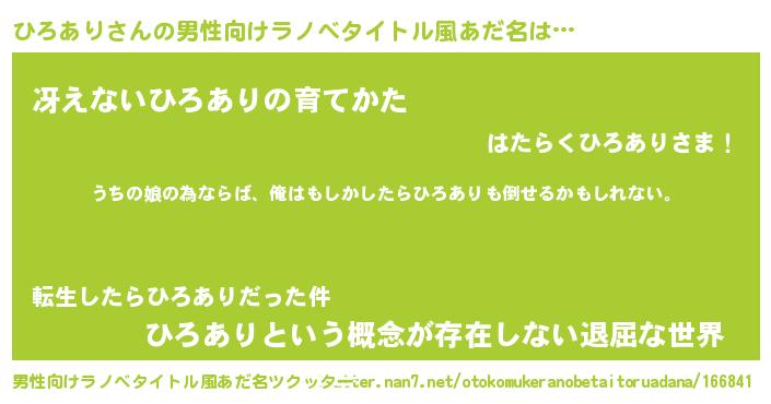 | 女子向けラノベタイトル風あだ名 | 『ひろありの婚約者』 |