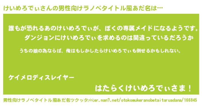 | 女子向けラノベタイトル風あだ名 | 『けいめろでぃの婚約者』 |