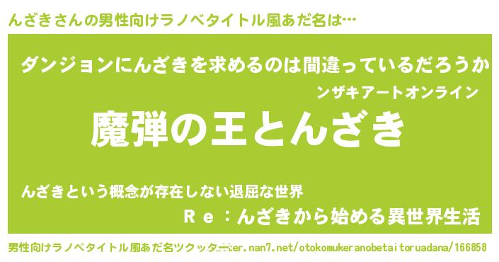 んざきさんの男性向けラノベタイトル風あだ名をツクッター!