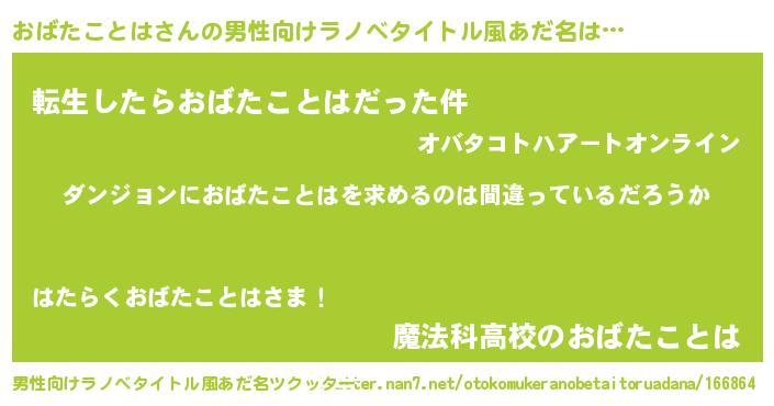 | 女子向けラノベタイトル風あだ名 | 『おばたことはは平凡を望む』 |
