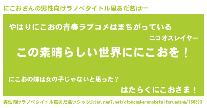 | 意味不明あだ名 | 『住所不定無職にこお(93歳)』 |