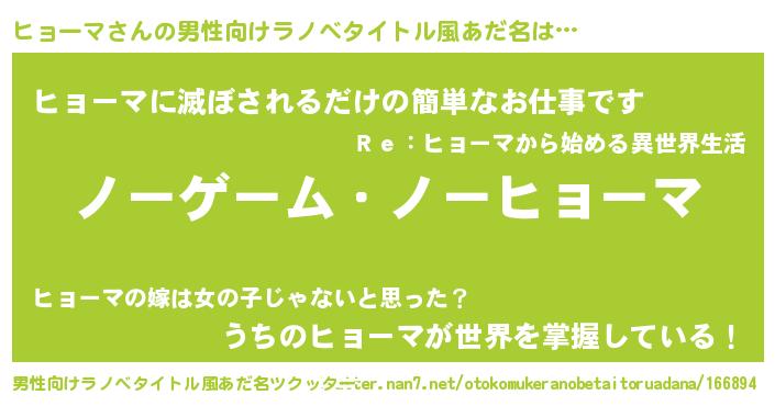 | 伝説のあだ名 | 『救世主となる錬金術士ヒョーマ』 |