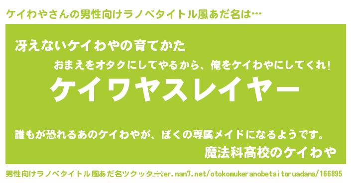 | ヘコむあだ名 | 『ケイわや(震え声)』『ケイふぇ~』 |