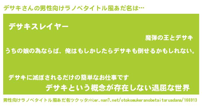 | 女子向けラノベタイトル風あだ名 | 『デサキの婚約者』 |