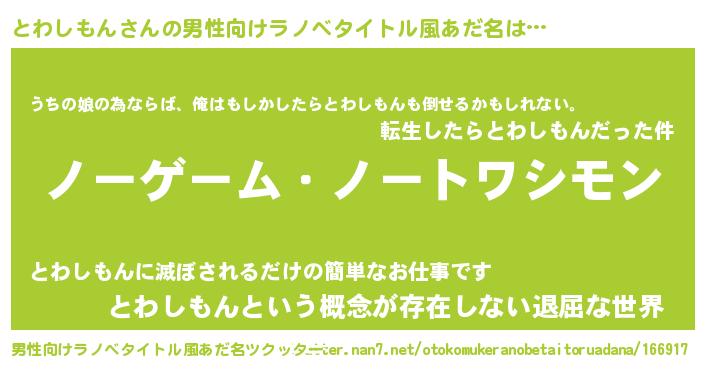| 女子向けラノベタイトル風あだ名 | 『とわしもん恋絵巻』 |
