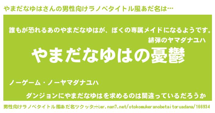 | 女子向けラノベタイトル風あだ名 | 『(仮)やまだなゆはのやんごとなき事情』 |