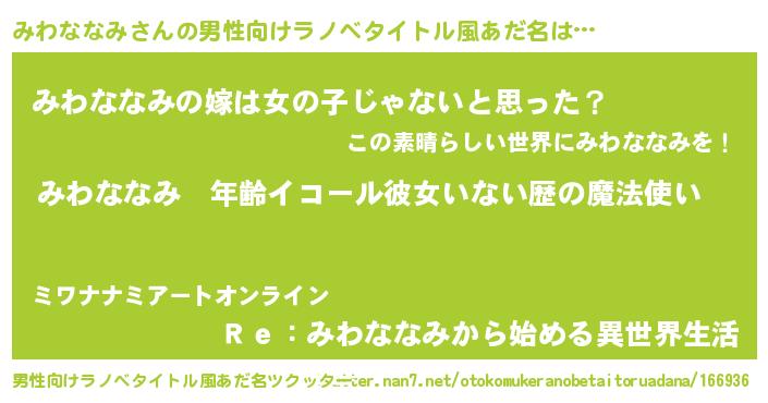 | 女子向けラノベタイトル風あだ名 | 『みわななみの玉の輿計画!』 |