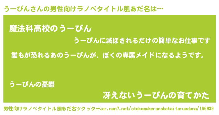 | ヒーロー風カッコイイあだ名 | 『ネオウーピン』『超時空戦士ウーピン』 |