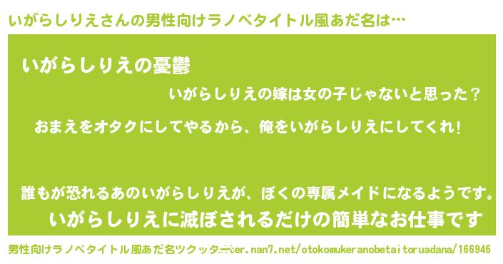 | 胡散臭い通販商品みたいなあだ名 | 『100人中100人が認めたマグネット磁石…その名も「いがらしりえ」』 |