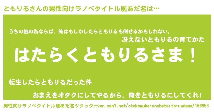 | 伝説のあだ名 | 『秘められし陰陽師ともりる』 |
