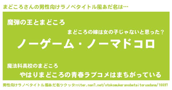 | 女子向けラノベタイトル風あだ名 | 『死神まどころの再婚』 |