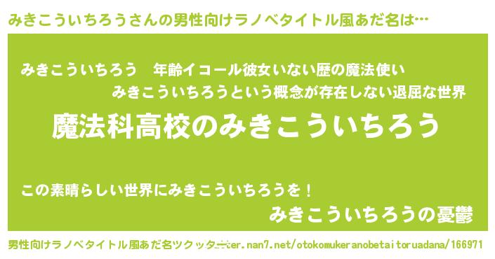 | 女子向けラノベタイトル風あだ名 | 『みきこういちろうアンティーク』 |