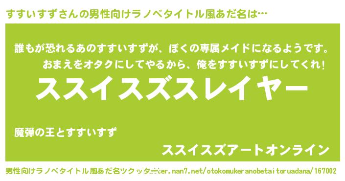 | 胡散臭い通販商品みたいなあだ名 | 『絶対に幸福をもたらす健康食品…その名も「すすいすず」』 |