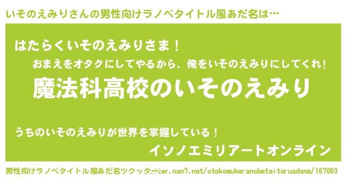 | 意味不明あだ名 | 『自称いそのえみり』 |