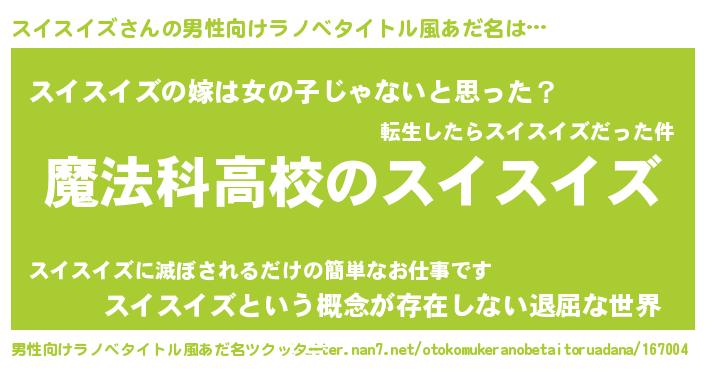 | 女子向けラノベタイトル風あだ名 | 『スイスイズアンティーク』 |
