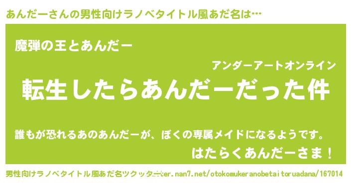 | 胡散臭い通販商品みたいなあだ名 | 『世界中を虜にした世界で10本だけ現存している希少なブランデー…その名も「あんだー」』 |