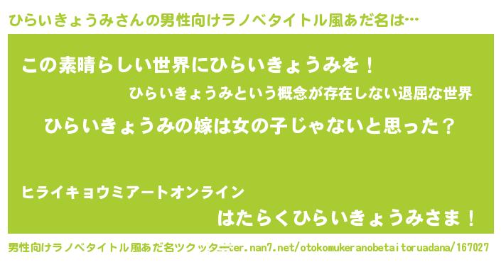 | ポケモン風あだ名 | 『ヒヒライキョウミ』『ヒーライ』 |