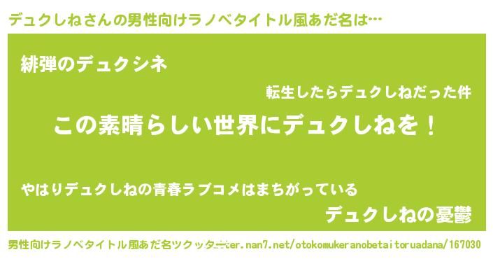| 意味不明あだ名 | 『住所不定無職デュクしね(53歳)』 |
