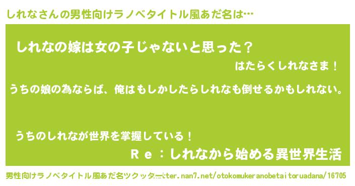 | 女子向けラノベタイトル風あだ名 | 『しれなの婚約者』『しれな様がみてる』 |