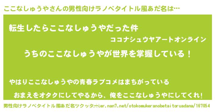 | ヒーロー風カッコイイあだ名 | 『慈愛の使者ここなしゅうや』 |