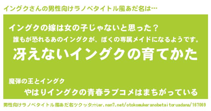 | 胡散臭い通販商品みたいなあだ名 | 『伝統あるサプリメント…その名も「イングク」』 |