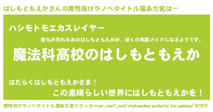 | 女子向けラノベタイトル風あだ名 | 『はしもともえかなんてお断りですっ。』 |