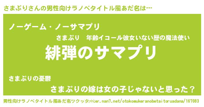 | ヘコむあだ名 | 『さまぷりん』『さまもー』 |