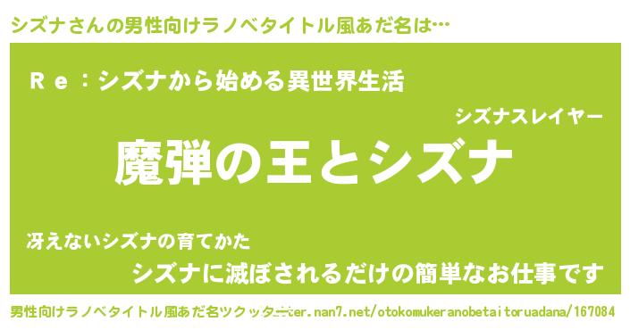 | 女子向けラノベタイトル風あだ名 | 『乙女ゲームの破滅フラグしかない悪役シズナに転生してしまった…』 |