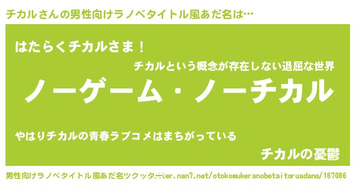 | ヘコむあだ名 | 『チカもー』『チカル(小並感)』 |
