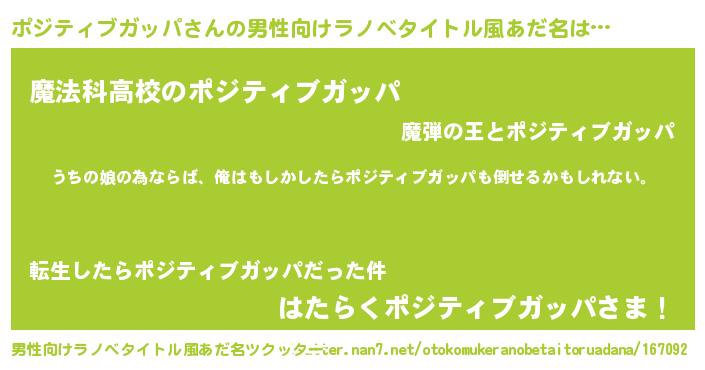 | ヒーロー風カッコイイあだ名 | 『ウルトラポジティブガッパマン』 |