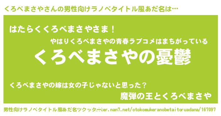 | 胡散臭い通販商品みたいなあだ名 | 『必ず成功する霊験あらたかなお札…その名も「くろべまさや」』 |