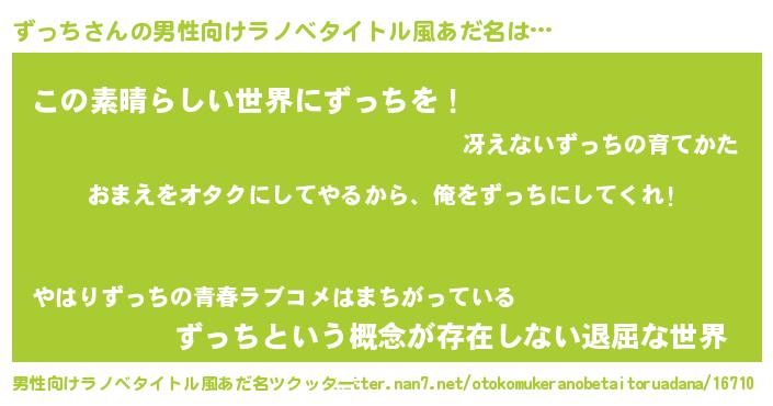 | 女子向けラノベタイトル風あだ名 | 『ずっち夫妻のなれそめ』 |