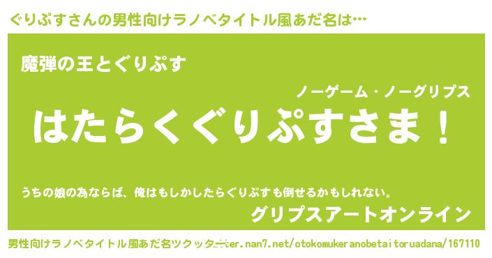 | 意味不明あだ名 | 『住所不定無職ぐりぷす(59歳)』 |