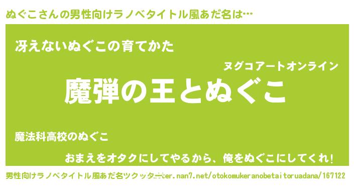 | ヘコむあだ名 | 『ぬぐにー』『豆乳』『ぬぐっ子』 |