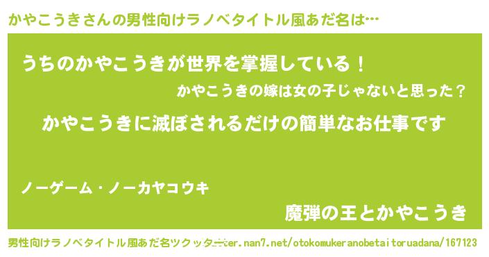 | 意味不明あだ名 | 『住所不定無職かやこうき(41歳)』 |