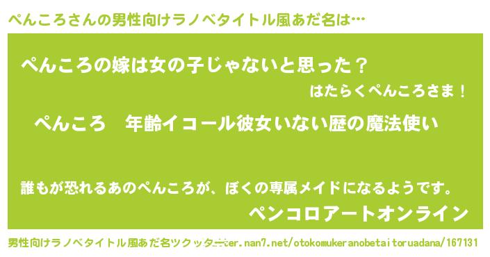 | 女子向けラノベタイトル風あだ名 | 『ぺんころの玉の輿計画!』 |